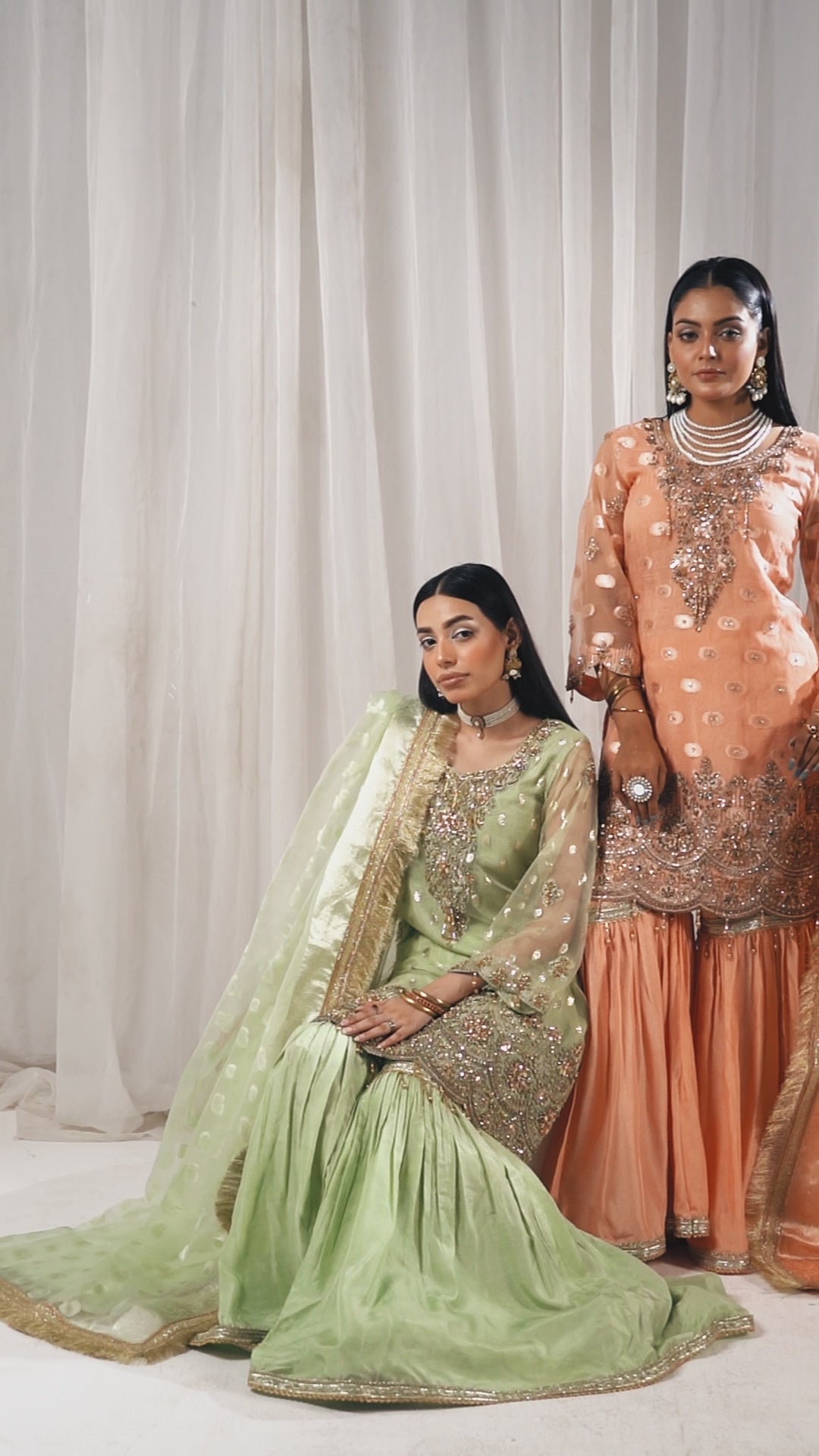 Zariah tells a tale of celebration — perfect for mehndis, intimate weddings, or when you simply want to shine like a memory in motion.